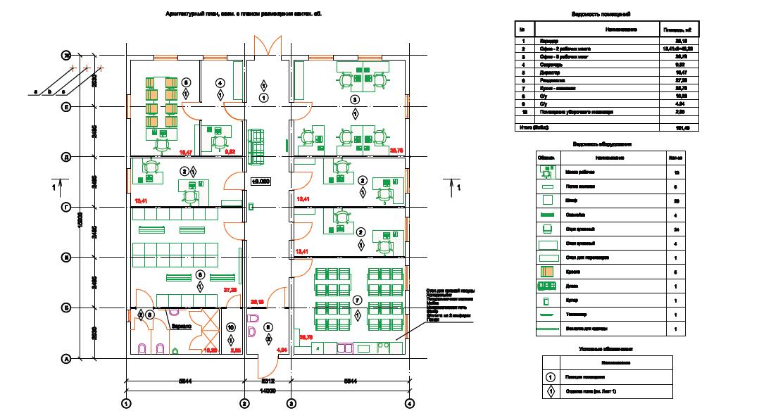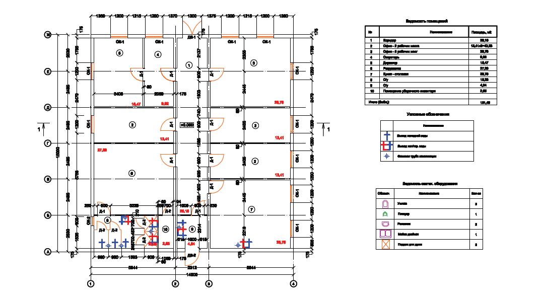 Архитектурные решения (АР): Внутренняя перепланировка с зонированием. Устройство дополнительных окон для естественного света (норма — 12.5% от площади пола для офисов). Входная группа с тамбуром.