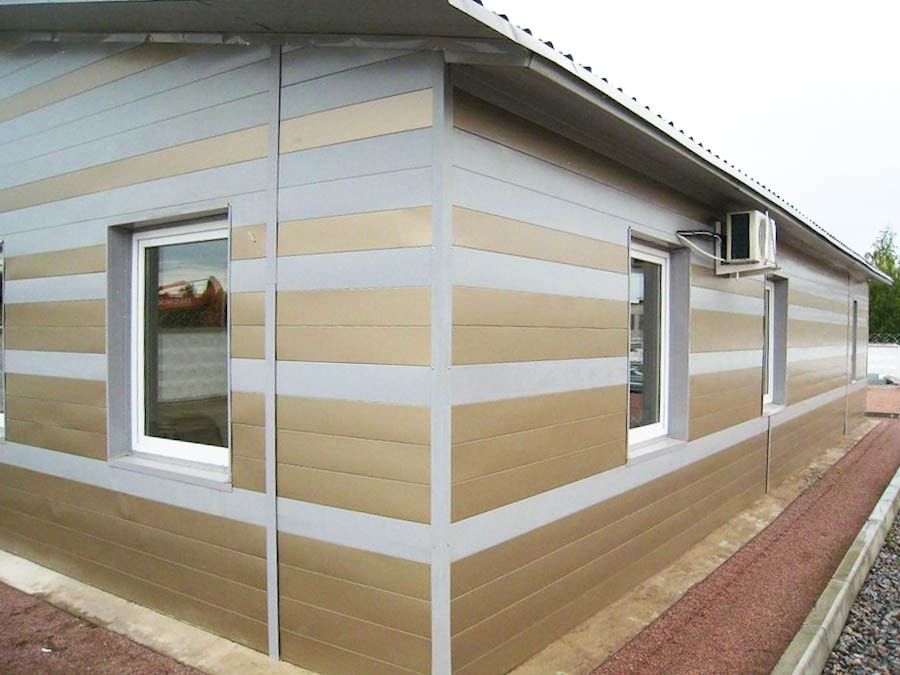 Стены административно-бытового здания (АБК) выполнены из трехслойных структурных панелей (система термопанелей ГЖС) с сердечником из конструкционной минеральной базальтовой ваты. Комплект наружных стеновых панелей: каркас панели из металлического оцинкованного профиля с необходимыми крепежными изделиями, утеплитель «ISOROC» толщиной 200 мм. Ветро-влагозащитная пленка, наружная облицовка – фиброцементная плита или металлический сайдинг с необходимыми крепежными и комплектующими изделиями, внутренние стороны пане-ли зашиты паро-гидроизоляционной мембраной повышенной прочности ИЗОСПАН-DM далее после монтажа с внутренней стороны обшиваются в 2 слоя ГСП.